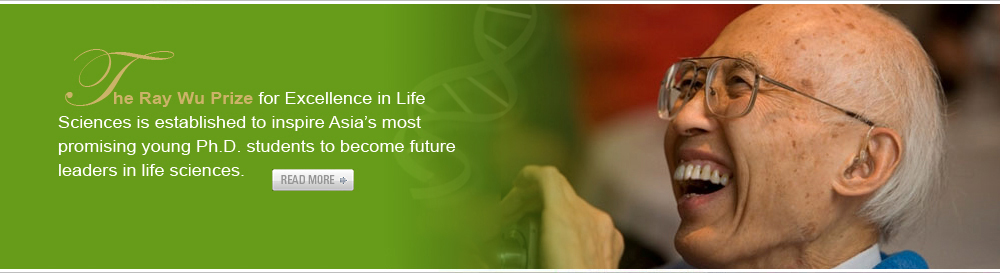 The Ray Wu Prize recognizes excellence in life science research by a graduate student for innovation, independent thinking, and dedication. Ray Wu Prize is awarded each year to graduate students who are pursuing a degree of Doctor of Philosophy (Ph. D.) in an academic institution located in mainland China, Hong Kong, Taiwan, or Singapore.